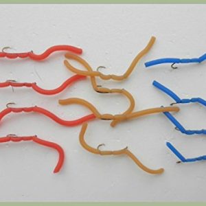 12 mouches de pêche en forme de ver, taille 10, couleurs bleu, rouge et terre pour la pêche à la mouche