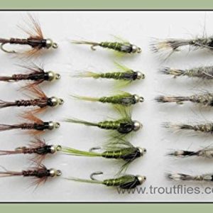 18 goldhead Nymphe mouches de pêche truite. Olive, lièvres oreille, Faisan Tails, Mixte
