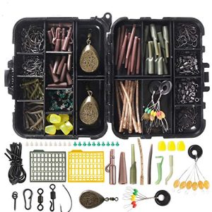 188pcs Kit Accessoires de Pêche Boîte de Pêche à la Carpe Ensemble comprenant des Crochets de Gabarit,des Pêches Pêche…