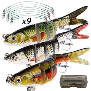 3PCS Leurres de Pêche Articulés 27g avec 9PCS Bas de Ligne pêche Fil de Pêche Vert Poissons Nageurs Swimbait Glidebait…