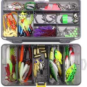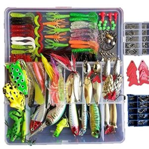 Afishup Leurres de Pêche Kit 168pcs, Spinnerbaits,Plastique vers,Minnow,Popper,Crayon en Métal Dur Leurres,Souples Pêche…